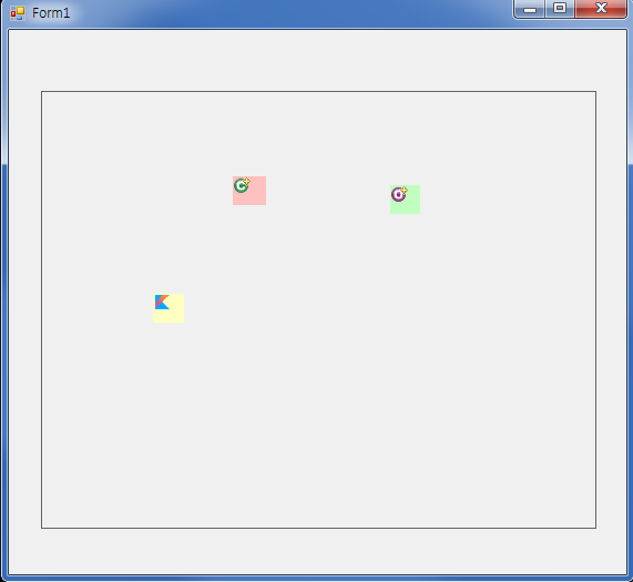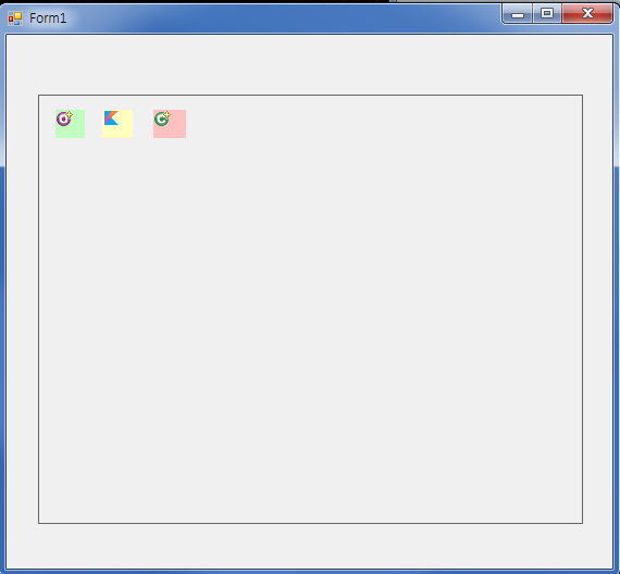 Sample로 WindowsForm에 Panel 하나와 PictureBox 3개 (Control) 를 배치하여 테스트 함.