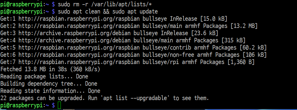 $ sudo apt clean && sudo apt update